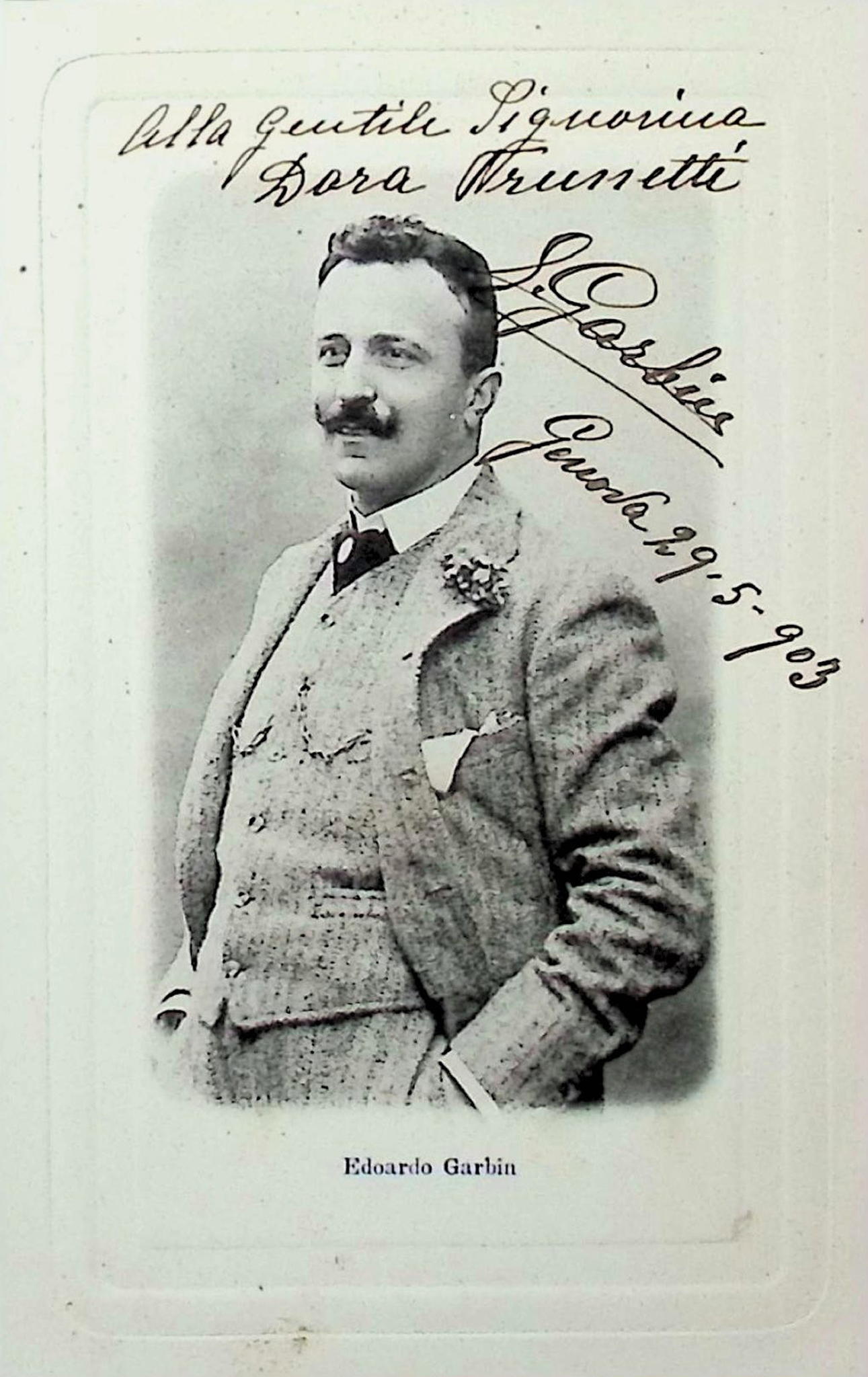 OPERA - GARBIN Edoardo (1865 - 1943) - Photographic portrait on postcard with autograph dedication signed