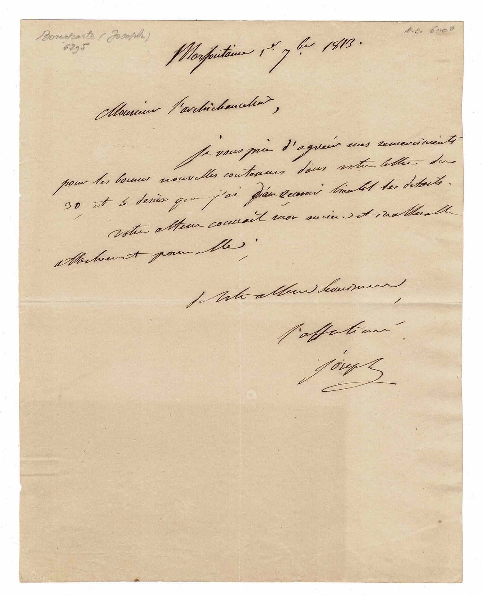 HISTORY - BONAPARTE Joseph (1768 - 1844) - Autograph letter signed - Napoleonica